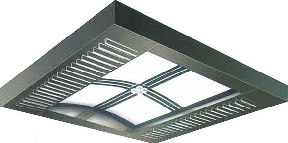 在鋼板噴涂地板上輔以長(zhǎng)方形中空透明燈柱,中間部分是拱形白色有機(jī)透光板的柔光照明設(shè)計(jì)