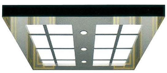 不銹鋼鏡面框架輔以筒燈,中間有機板